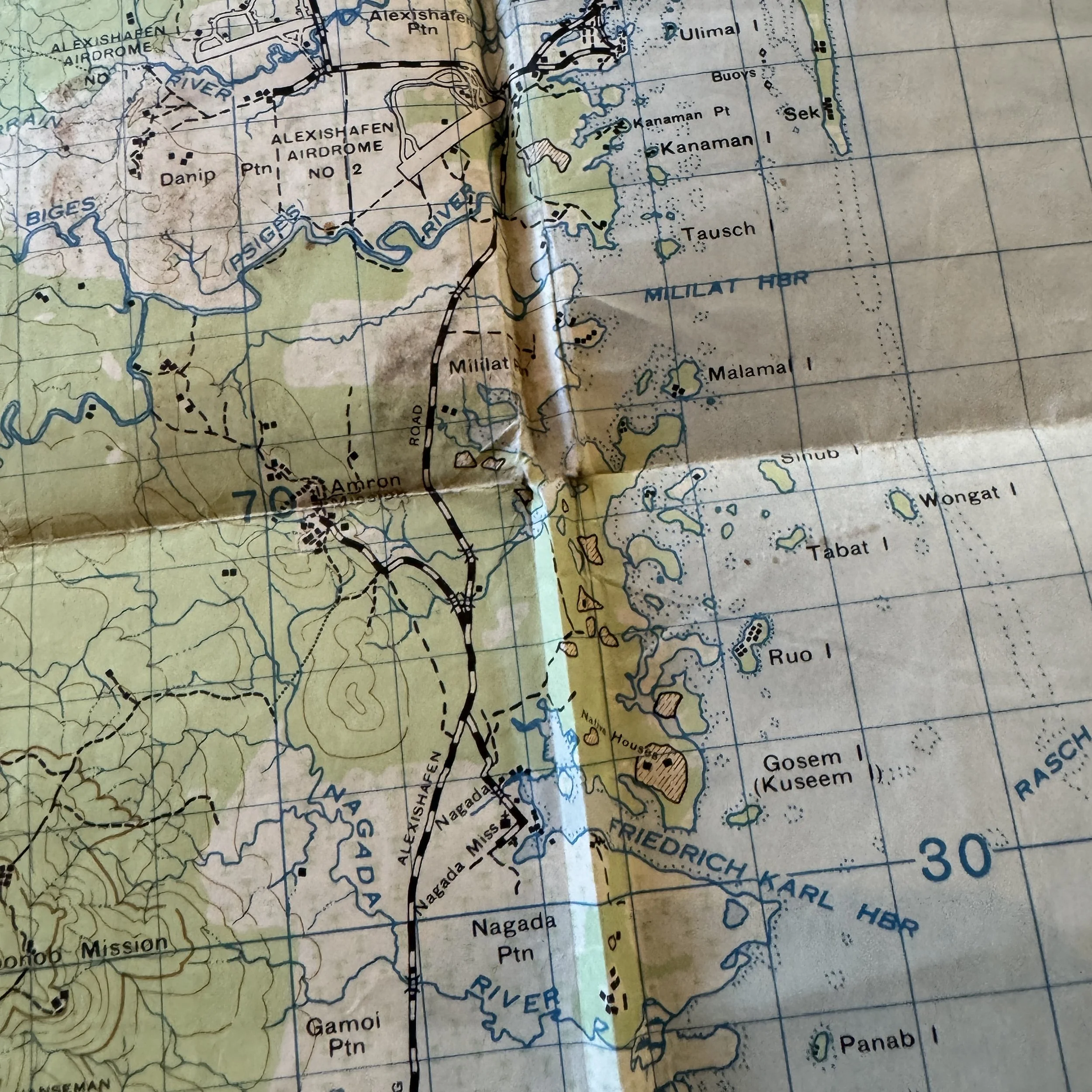 The 8th PRS and this map are documented in the book The Eightballers: Eyes of the Fifth Air Force - The 8th Photo Reconnaissance Squadron in WWII by John Stanaway and Bob Rocker…”All in all, a good day's work. Duke seems to have caught the war spirit up there at Marilinan. He photographed Nubia from 12,000 and Alexishafen and Madang from 10,000. That's not recommended procedure, but it's hard to chastise a man for a job well done. Avery coulcln't get into Wewak because of weather conditions, but he did collect Alexishafen on his way home.