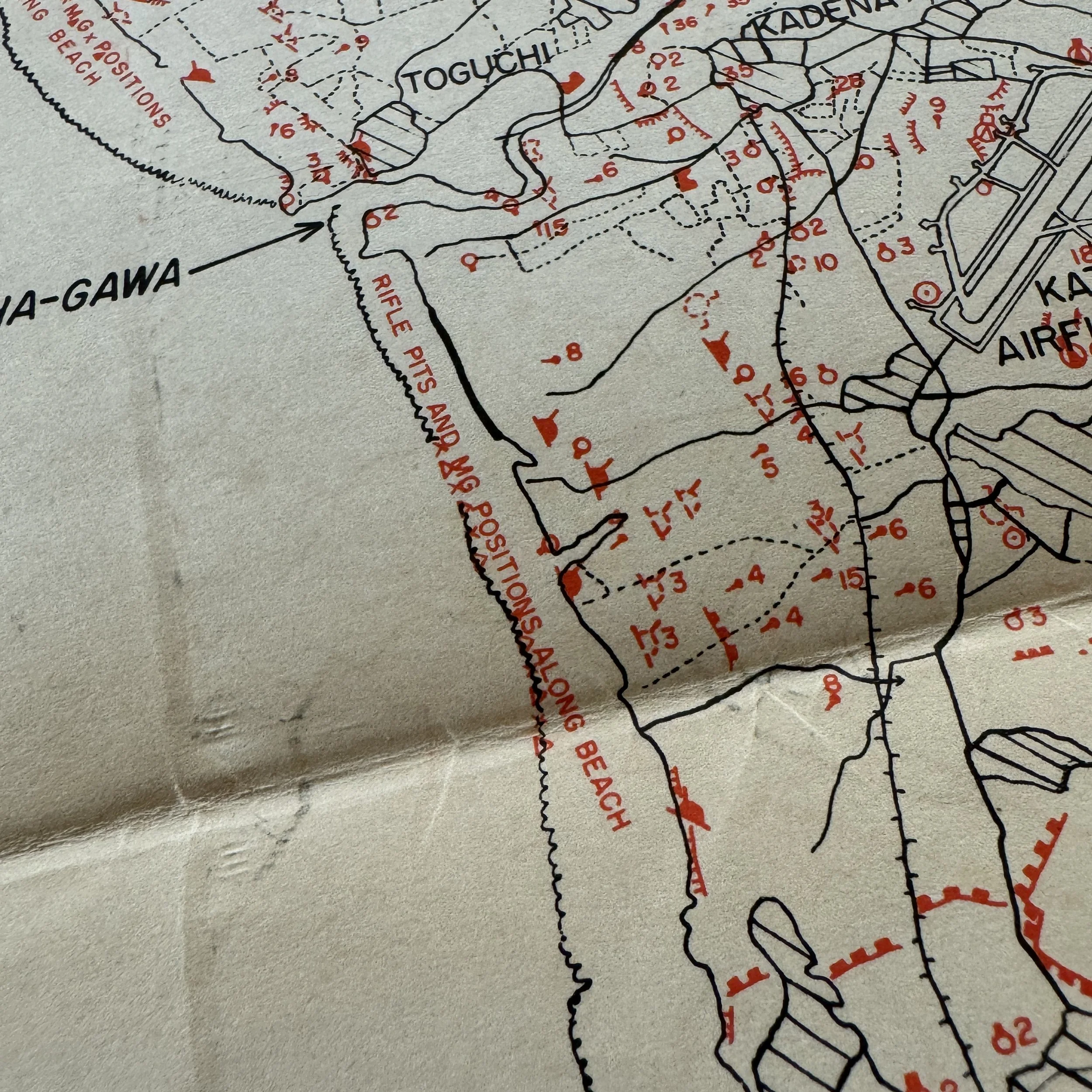 EXTREMELY RARE! WWII 1945 Battle of Okinawa (Operation Iceberg) “Japanese DEFENSE INSTALLATIONS" HAGUSHI BEACHHEAD SECTOR D-Day Invasion Map