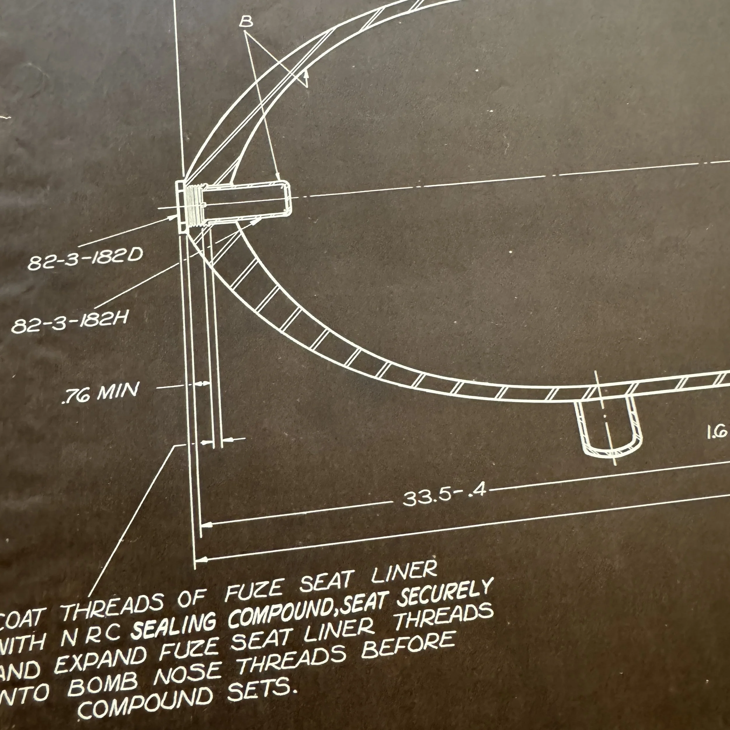 This original Ordinance Department blueprint was first created in May 1942 and was updated improvements to the 2,000 lb M66A2 bomb from the previous Ordinance Dept. with revisions done during WWII and the Korean War in August 1945, February 1949, and February 1951.